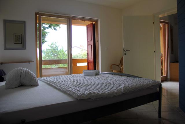 Upon arrival we were warmly welcomed by a charming lady, who we had previously talked on the phone with, while she explained us where Villa Maria is located, and directed us towards the parking lot, which is located just before the entrance of the apartment. From the center of Baška to Zarok will take about 3 minutes by car. You rise on a steep hill where you will on the right side of the road saw Villa Maria, from then you go a little higher and turn right at the corner with rubbish bins. On the right side you will see apartments with slightly elevated parking lot, as you can see in the picture from the gallery. The entrance to the apartment is adorned with a fence full of grapes, which leads to a beautiful wooden door. Lady toured us around the apartment that she prepared for us with fresh towels and bed linen. Villa Maria has five modern equipped apartments. We were residing in the largest apartment, which has two floors and can offer seven beds, so we settled in pretty comfortably. The apartment had three bedrooms, a kitchen with extra bed, a large dining table, satellite TV, a bathroom with a toilet on the first floor, an extra toilet on the second floor, and a beautiful terrace overlooking the sea from which you can enjoy the morning sunrise, which gently warms and lights on wooden chairs and balcony doors.