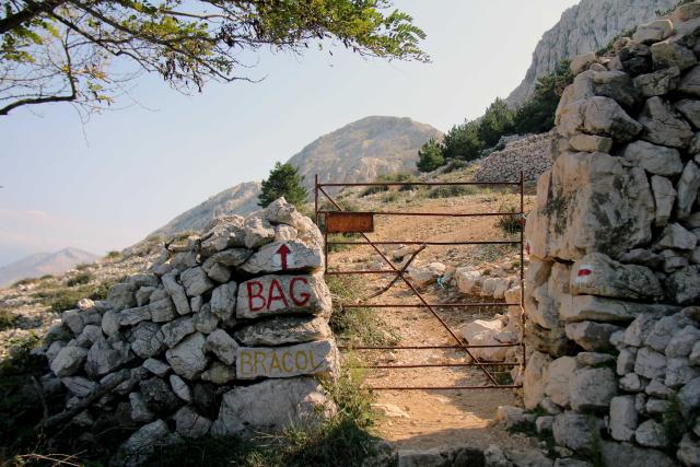 If you are planning to visit island Krk and you would like to combine the enjoyment on the beach with a short hike, I recommend you to go on a rout towards Bay Vela Draga. Because our goal was to explore the most interesting and hidden corners, that are usually not really known to tourists, we decided to explore the path towards Bay Vela Draga. If you are looking towards the sea, on the right side, towards the edge of the most famous Baška beach, is the start of the route. You climb a little hill that leads pass the “free ride” area, which is great for jumping with cross-country bikes – as we were told by young boys who were editing the area. While you pass that, you continue your route through this beautiful pine forest, all the way to rocky slopes, which holds a spectacular view on the town of Baška. I assure you that you will be fascinated by the dark blue sea and majestic cliffs, which you will see at the beginning of the path. Soon you will go through the shepherd door, and then climb towards a bit steeper and more rocky area, on which you will hike for a few minutes. Once you will reach the top, you will see a signpost that will show you the way towards Bay Vela Draga, which is about 3km away from that point. If you will look back on this point you are going to see the rocky area overlooking the sea. The path you’re about to walk on is a bit different. In front of you there will be a more shepherd area with some stone built scarps, which protects the land from the wind. In the distance, along the way, you will notice a lighthouse on the island Prvić,as well as some other directions, which are there to explore. The trail is well marked. Very soon we came to the next signpost, which showed us the way towards Bay Vela Draga and its beach, which was about 1km away. We were looking into the bay and excitingly getting closer and closer to the beach. View of the bay was wonderful. On the beach someone toyed with the rocks and created some kind of sign, that looked pretty interesting from the top. On the right side of the beach, if you look towards the sea there are two kind of half-demolished houses, built of stone. Visitors like to use them as a dressing room or for drying clothes.